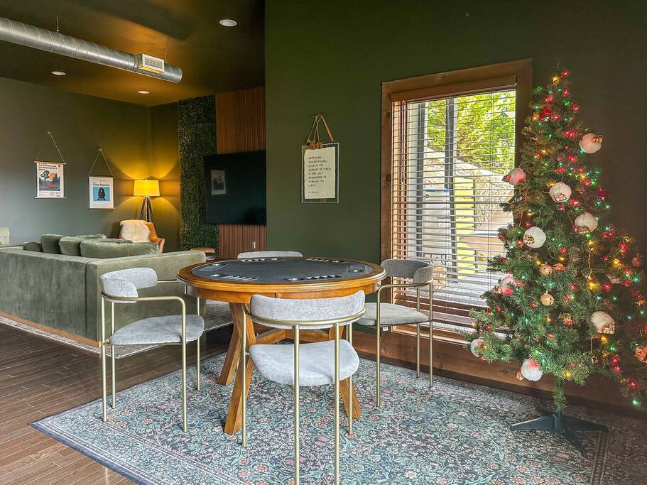 Book your Thanksgiving or Christmas mountain escape! Cozy up by the firepit, soak in the hot tub with mountain views, and make the holidays magical on The Polar Express. Enchanted Hollow is a luxury cabin 5 minutes from Bryson City and the Polar Express. Perfect for families and groups: views, hot tub, putting green, cowboy-cauldron firepit and decks. Inside: theater lounge, arcade, poker table and custom train bunks. 4 bedrooms plus a flex game room designed for connection and laughter.